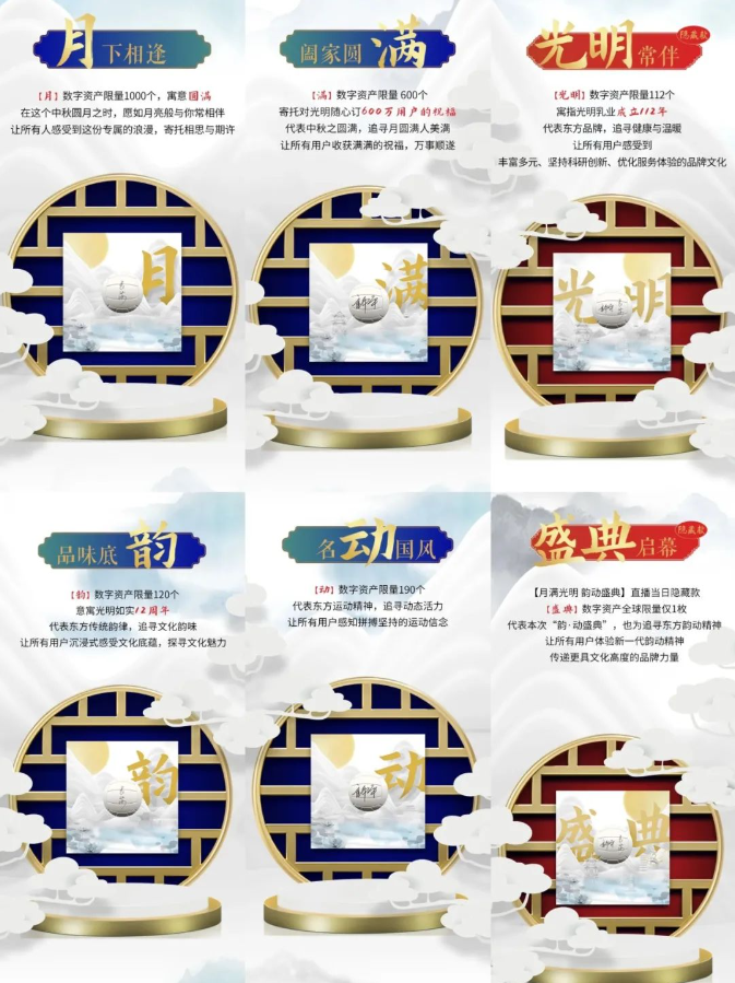 今年6月,光明乳业联合上海数据交易所发布的首个数字资产——“月前行,越光明”,免费限量首发3款数字资产形象共计1010份,参与抢购用户超过万人,发行即售罄,获得了全网百万级粉丝关注。
