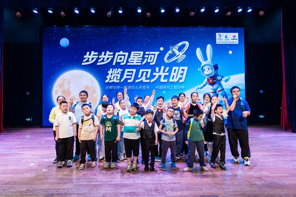 本次公益亲子专场活动中,光明乳业将“探月精神”与“公益初心”紧密相连,特别邀请了“来自星星的孩子们”参与,用温暖与创新为特殊群体搭建起触摸宇宙的桥梁。活动伊始,一群来自星星的孩子们以灵动的表演拉开序幕,用纯粹的艺术表达呼应“探月”主题的纯净与美好。
